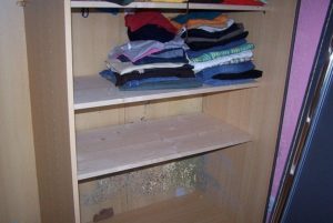 يمكن أن تظهر الفطريات في الخزانة ، خاصةً إذا كانت الخزانة خشبية ، وكانت الملابس رطبة قليلاً من وقت لآخر.