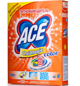 - «ايس اوكسي ماجيك". شكل الإصدار - مسحوق التنظيف الجاف. لإزالة آثار الجزر على الملابس ، يجب عليك أولاً تحضير محلول عمل وفقًا للإرشادات المرفقة. ثم ، باستخدام إسفنجة ، ضعه على الأوساخ من الحافة إلى المنتصف ، وانتظر 10-15 دقيقة. ثم قم بغسله في الغسالة ، مع إضافة مزيل للبقع إلى مقصورة مسحوق الغسيل.