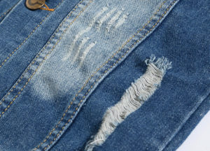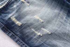 تصبغ خيوط الدنيم الطولية بلون البنطال ، وتختلف الخيوط المستعرضة في الظل عن القماش الرئيسي. لذلك ، إذا تركت فقط الخيوط المستعرضة الخفيفة في الأماكن المقصودة ، فإن الجرجرة ستبدو طبيعية ومشرقة قدر الإمكان.