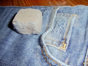 طريقة أخرى سريعة وملائمة لعمل الجرجير على الجينز بنفسك في المنزل وهي معالجتها بحجر الخفاف العادي. في الواقع ، هذه الطريقة مشابهة جدًا للشيخوخة باستخدام ورق الصنفرة ، ولكن عند استخدام الخفاف ، تكون الخدوش أكثر دقة وخفيفة وطبيعية.