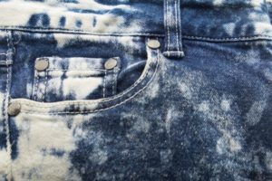 - المواد الكيميائية... يتم إنشاء تأثير السراويل البالية عن طريق تبييض مناطق فردية من القماش. عادة ما يتم التعامل مع البنطلونات بالعوامل المحتوية على الكلور - يتلاشى الطلاء في أماكن معينة ، ويبدو أن البنطلونات الجديدة تم ارتداؤها لفترة طويلة جدًا. الطريقة فعالة للغاية وبسيطة ، ولكن لها أيضًا عيبًا - أثناء المعالجة الكيميائية ، تقل قوة النسيج ، وسيتلف الجينز لاحقًا بشكل أسرع.