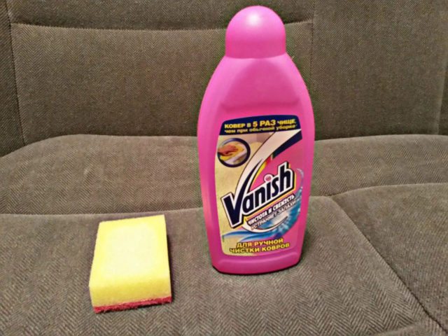 يتم غمس الإسفنجة في المحلول الناتج ويتم معالجة البقعة. بعد الإجراء ، يُنصح بمسح المفروشات بقطعة قماش مبللة.