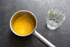 - 1 ملعقة صغيرة صب الجيلاتين بنفس كمية الماء واتركه ينتفخ.