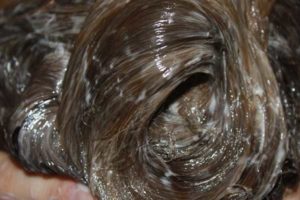 إذا كانت الضفائر دهنية ، فسيتم دفع بروتين بيضة واحدة إلى الكتلة الجيلاتينية ويضاف الليمون. إذا كانت جافة ، فإن المكمل يتكون من صفار البيض والحليب. يتم تطبيق القناع على تجعيد الشعر المغسول حديثًا. ضعي كيسًا بلاستيكيًا على رأسك واربطي وشاحًا دافئًا. يجب الاحتفاظ بقناع مفيد لمدة نصف ساعة على الأقل. ثم اغسلي شعرك جيداً.