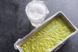 - تُسكب كتلة جيلاتينية على قماش مبلل وتوزع بالتساوي.