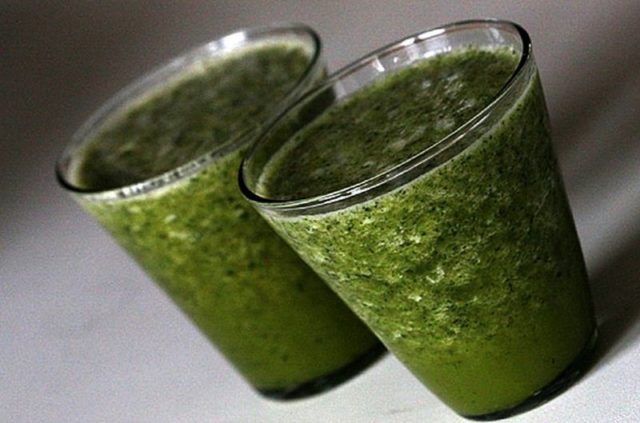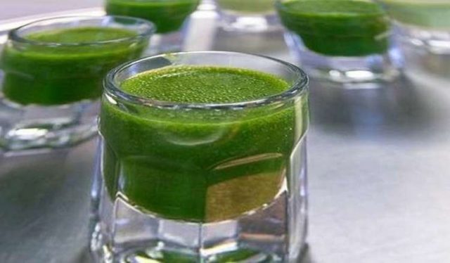 - يتم عصر العصير الأخضر من الأوراق والسيقان الطازجة.