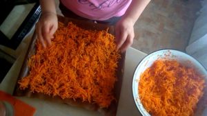 - في الفرن... غطي صينية الخبز بورق زبدة ، ضعي الجزر في طبقة رقيقة ورقيقة. تحمل 3 ساعات عند درجة حرارة 80-90 درجة. يمكنك تجفيف المادة الخام بطريقة أخرى. تتكون العملية من ثلاث مراحل مدة كل منها 20 دقيقة عند درجة حرارة 200 درجة. بعد كل مرحلة ، يُترك المنتج ليبرد تمامًا ويتم قلبه.
