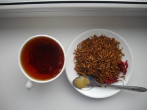 يمكنك مزج الأعشاب والجزر والتخمير بنفس الطريقة. هذا الشاي له فوائد استثنائية للبشرة بسبب وجود مركب من A و E و K. يتم التعبير عن الخصائص المفيدة لكوكتيل فيتامين في الحفاظ على بشرة صحية ، والقضاء على العيوب ، وتعزيز إنتاج الكولاجين الخاص به.