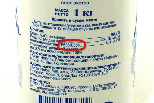 من أجل حماية نفسك وعائلتك وعدم شراء منتج يحتوي على E535 ، من المهم جدًا الانتباه إلى التكوين. التغليف اللامع كحيلة تسويقية يجذب انتباه المشتري. من الأفضل شراء ملح الطعام بالوزن. يمكن أن يكون مثل هذا المنتج أقل جودة في المظهر من الملح الأبيض البلوري في عبوات ساطعة ، ولكن من المرجح أنه لا يوجد عامل مضاد للتكتل.