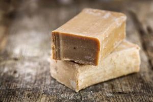 - Waschseife entfernt nur frische Flecken. Wenn eine Verunreinigung auftritt, wird der verschmutzte Bereich sofort eingeseift, 5 bis 10 Minuten einweichen gelassen, unter fließendem kaltem Wasser gewaschen und das Produkt wird auf die übliche Weise gewaschen. Experten empfehlen die Verwendung von Seife mit einem hohen Fettsäuregehalt von 72%.