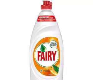 - Geschirrspülmittel können frische Aquarellflecken von der Kleidung entfernen. Fee macht es besonders gut. Eine kleine Menge des Produkts wird auf den kontaminierten Bereich aufgetragen und gründlich eingeseift. Es ist zweckmäßig, den Eingriff mit einer alten Zahnbürste durchzuführen. Waschen Sie die Kleidung nach 5 Minuten wie gewohnt.