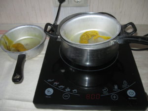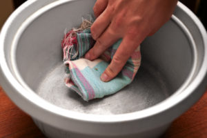 - Legen Sie Haushaltsutensilien mit Spuren von Paraffin in die vorbereitete Lösung.