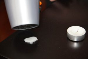 - Halten Sie durch Wachsverschmutzung beschädigte Haushaltsgegenstände direkt über einer offenen Feuerquelle.