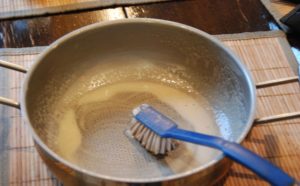 - Entfernen Sie mit einem Pinsel mit Soda die restlichen Paraffinspuren.
