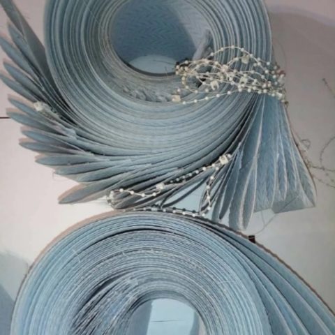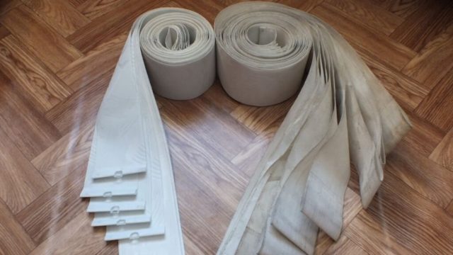 - Rollen Sie die Lamellen zu losen Rollen zusammen. Wenn die Stoffstreifen schmal sind, können sie in 7-10 Teilen verbunden werden. in einem Bündel und breit - 7-10 Stk.