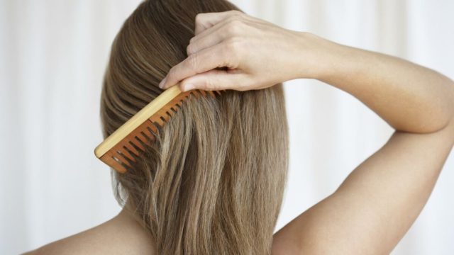 Das Haar wird nach dem Waschen und Trocknen gekämmt und bewegt sich von den Enden zu den Wurzeln. Der Eingriff dauert einmal pro Woche nicht länger als 5 Minuten.