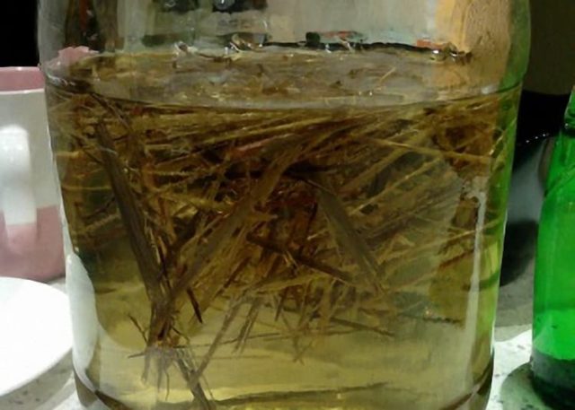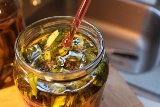 Wenn fertig, wird die Tinktur gefiltert. Es muss dreimal täglich 15 ml eingenommen werden. Der Behandlungsverlauf sollte nur eine Woche dauern, dann 5-6 Tage Pause machen und gegebenenfalls die Therapie wiederholen.