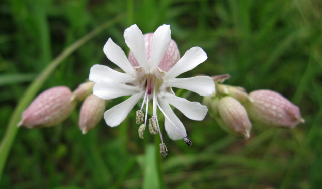 Silene vulgaris (Silene vulgaris) ist eine mehrjährige Pflanze aus der Familie der Gewürznelken. Es hat eine kurze, schwache Wurzel und einen nackten, aufrechten Stiel. Die Blätter des Grases sind bläulich und lanzettlich, länglich und bis zu 10 cm lang. Die oberen Platten sind sesshaft, die unteren verjüngen sich zu einem kurzen Blattstiel.