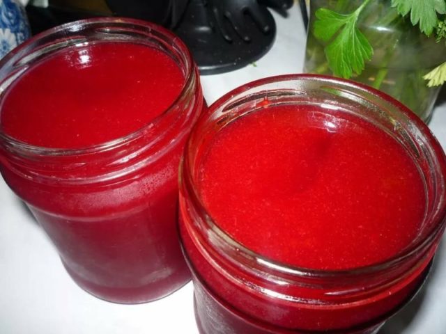 - Der resultierende Saft wird ohne weitere Verarbeitung in erhitzten sterilisierten Gläsern ausgelegt und zur Lagerung weggelegt.