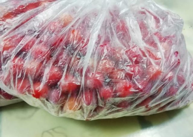 - Einfrieren - Viburnum wird in Plastiktüten ausgelegt und in den Gefrierschrank gestellt.