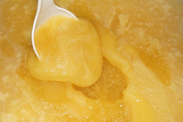 - fügen Sie einen kleinen Löffel Bienenprodukt hinzu.