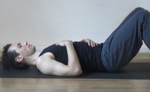 - Legen Sie sich mit gebeugten Beinen auf den Rücken und versuchen Sie, alle Muskeln des Körpers so weit wie möglich zu entspannen.
