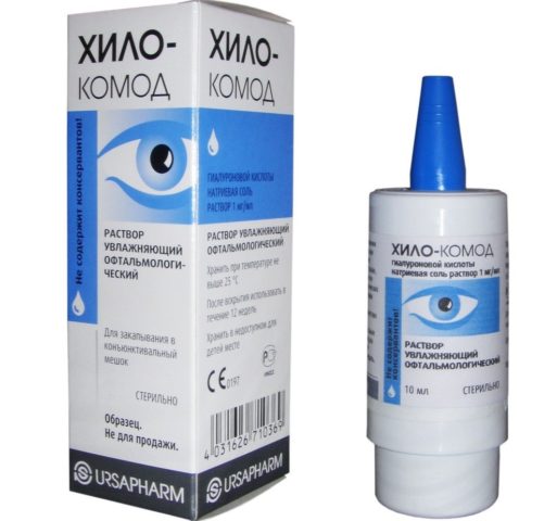 Augentropfen mit Hyaluronsäure werden verschrieben, um die durch Trockenheit der Augen verursachten Beschwerden zu beseitigen. Die Verwendung von Medikamenten ist beim Tragen von Kontaktlinsen möglich, was ihr Vorteil ist.
