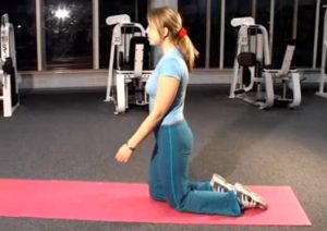 - Eine Fitnessmatte wird auf den Boden gelegt. Dann knien sie nieder und strecken den Rücken.