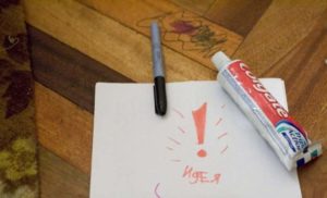 - Пастата за зъби също помага понякога да изтриете маркера. Можете да го нанесете върху линолеумната повърхност с ненужна четка за зъби.