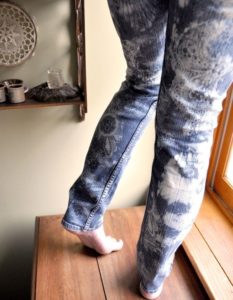 Ако простото промяна на цвета на панталоните от деним не е достатъчно, можете да опитате да избелите плата на шарки с шарки, за да получите изключителен и необичаен дизайн.