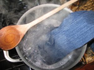 - Потопете дънките изцяло във вряща вода;