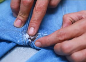 След използване на готварска сол под каквато и да е форма, дънките трябва да се измият старателно в топла вода с помощта на прах за пране.