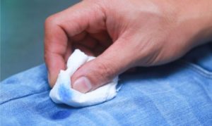 Важно е да не търкате дънките след нанасяне на алкохолния разтвор, тъй като съществува риск от отстраняването на част от синьото багрило от тъканта заедно с петното.