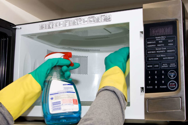 Много домакински почистващи препарати не са безопасни. Те остават на повърхността на микровълновата печка и при нагряване могат да влизат в храната.