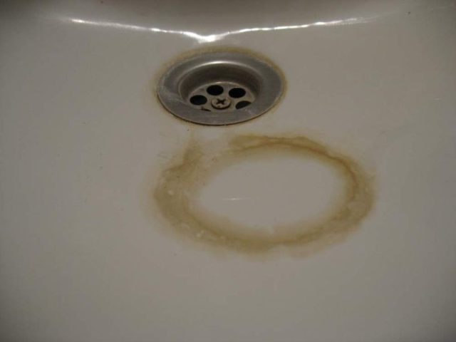 Постоянният контакт на повърхността с вода води до образуване на отлагания. Появата на специфични замърсители се дължи на състава на течността. Появата на варовик се влияе от излишък на магнезиеви и калциеви соли. Емайлът постепенно пожълтява.