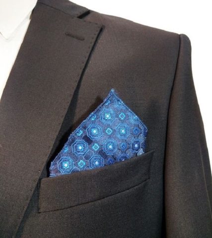 На второ място, той е малко по-малък по размер от стандартната кърпичка. Всъщност в този случай пашата се избира, като се вземат предвид параметрите на джоба на гърдите на якето. Ако говорим за оптималния размер, тогава за копринен продукт той е 37 * 37 см (разрешени са до 45 * 45 см). Но е по-добре да изберете по-малко ленени и вълнени продукти, в някои случаи ще бъде достатъчно 33 * 33 см. Също така си струва да се има предвид, че колкото по-голям е джобният квадрат, толкова по-интересен може да бъде сгънат.