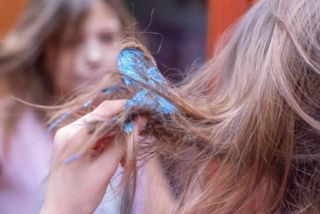 Можете да почистите слузта от косата си с топла течност. За тази цел трябва да задържите нишките в топла вода за няколко минути и след това да премахнете лепкава играчка с помощта на гребен.