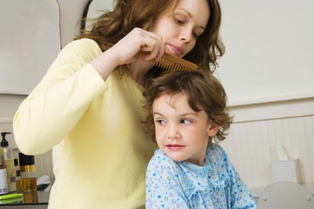 Инструментът може да отлепи слузта от косата при възрастни. На нишките се нанася водка или спирт за триене. Къдриците трябва да се сресват и измиват с шампоан.