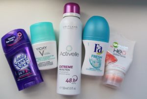 Съвременните козметични продукти са представени от голямо разнообразие от средства за изпотяване и миризма на подмишниците. Най-популярните са: