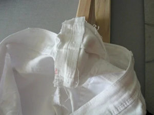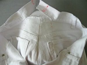 Първото нещо, което трябва да направите, е да „разтворите“ нещото възможно най-внимателно с острие или специален рипер. За да направите това, коланът се съблича отзад, след това шевовете на седалката и шевовете на стъпалото, достигайки линията на бедрата. Следващата стъпка е да почистите нишките по краищата и да изгладите продукта.