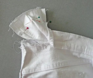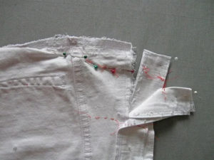 - Шийте на сгънати ръбове, хващайки части от колана. Ако гънката е твърде голяма, тогава част от тъканта може да бъде отрязана.