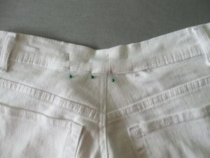 Можете да намалите колана на дънките и в същото време да шиете продукта в глутеалната зона, като замените задния шев с цип. В този случай трябва да се запасите със следните артикули: