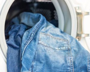 - Потопете дънки, които са големи в кръста, в барабана на пералнята.