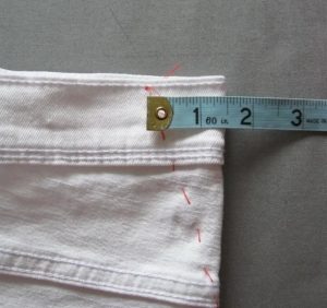- Измерете получената стойност от сгънатата бастинг от двете страни и положете линиите с контрастни нишки.