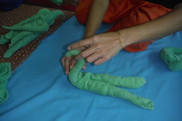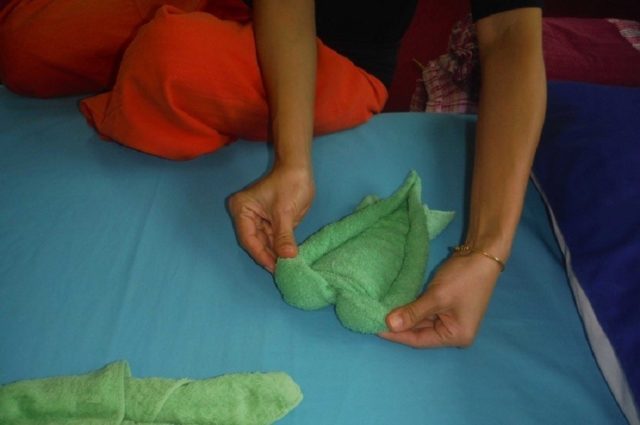 Въпреки че е лесно да се създаде лебед за кърпи, има и други опции. Например в Тайланд е обичайно да се добавя следната фигура по съвсем различен начин: