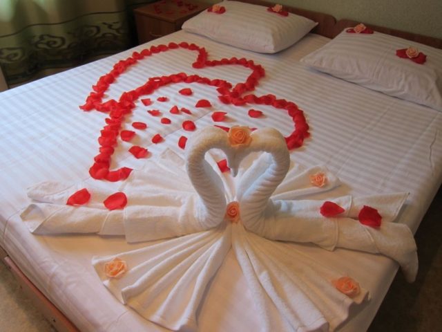 За младоженци обикновено се изпълнява двойка лебеди под формата на булка и младоженец. За тези цели се използва и подходящият декор, например: