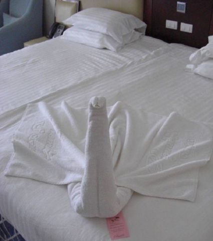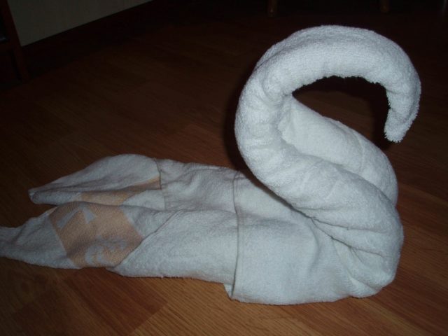 В много хотели с високо ниво на обслужване те се опитват да посрещнат гостите си в най-добрия случай. И често в стаите можете да видите такова оригинално представяне на предмети за лична хигиена, като необичайни фигури, сгънати от тях. За съжаление те се развиват предимно, без дори да се чудят как са били сгънати. Но всъщност направата на лебед с кърпа не е толкова трудна. И след като научихте подробните инструкции за сгъване, можете да впечатлите близките си у дома.