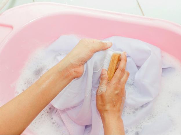 - препоръчително е да накиснете кърпата във вода с добавка на препарат за 20-30 минути преди почистване;