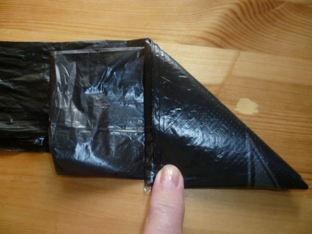 - Διπλώστε για δεύτερη φορά, το κάτω μέρος πρέπει να καλύπτει το άνοιγμα των λαβών.