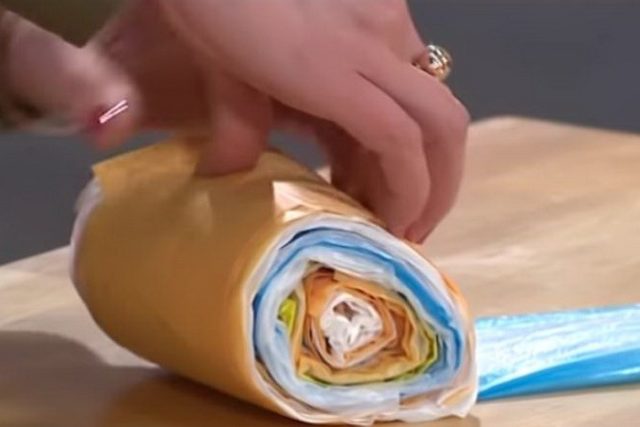 Για να τα καταλάβουν τουλάχιστον χώρο, πρέπει να τα διπλώσετε πριν τα τοποθετήσετε στην ντουλάπα. Είναι πιο βολικό να τοποθετείτε μια τσάντα σε έναν οργανωτή ή ένα μικρό κουτί σε συμπαγή μορφή. Το πλεονέκτημα είναι ότι μπορούν να χωρέσουν περισσότερο, δεν θα καταλάβουν πολύ χώρο για την αποθήκευσή τους στην κουζίνα.